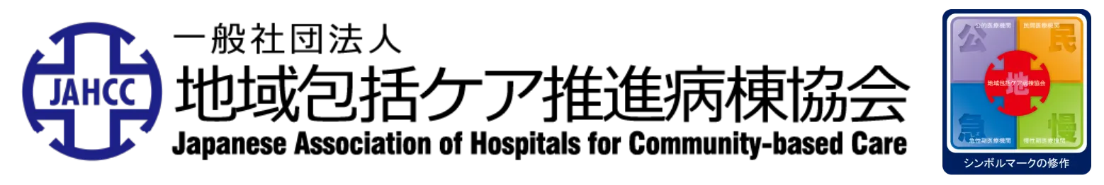 また、急性期や慢性期、公的や民間の医療機関「急慢公民」を問わず、様々な病床や経営母体から当協会に入会されたパートナーの皆様とともに、本病棟の医療の質と経営の質を高めていきたいとの思いが込められています。中央には、協会の英語名Japanese Association of Hospitals for Community-based Careの略称であるJAHCCを入れました。
